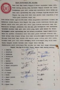 Hendra menyebutkan nama-nama seperti Ismail, Abdullah, Abuhasan, dan lainnya. Diketahui, kepala desa pada tahun 2000 adalah Almarhum Abdullah.
