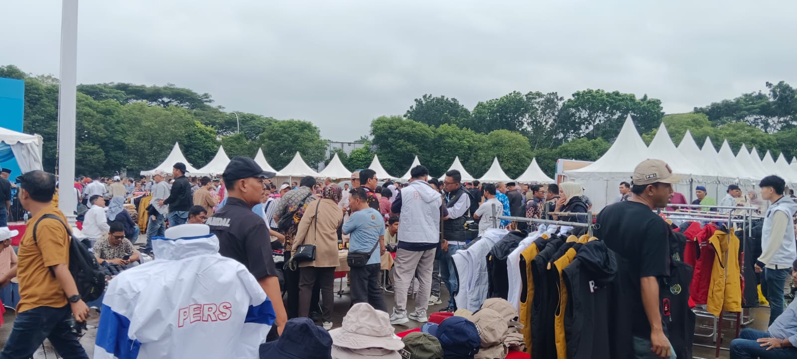 ” Kami jauh-jauh dari padang untuk mengais rejeki dalam berjualan pernak-pernik yang alat kerja jurnalistik di lapangan. Seperti topi, kaos, baju, kain tenunan asal dari masing-masing daerah,”ujar heru sembari melayani pengunjung HPN.
